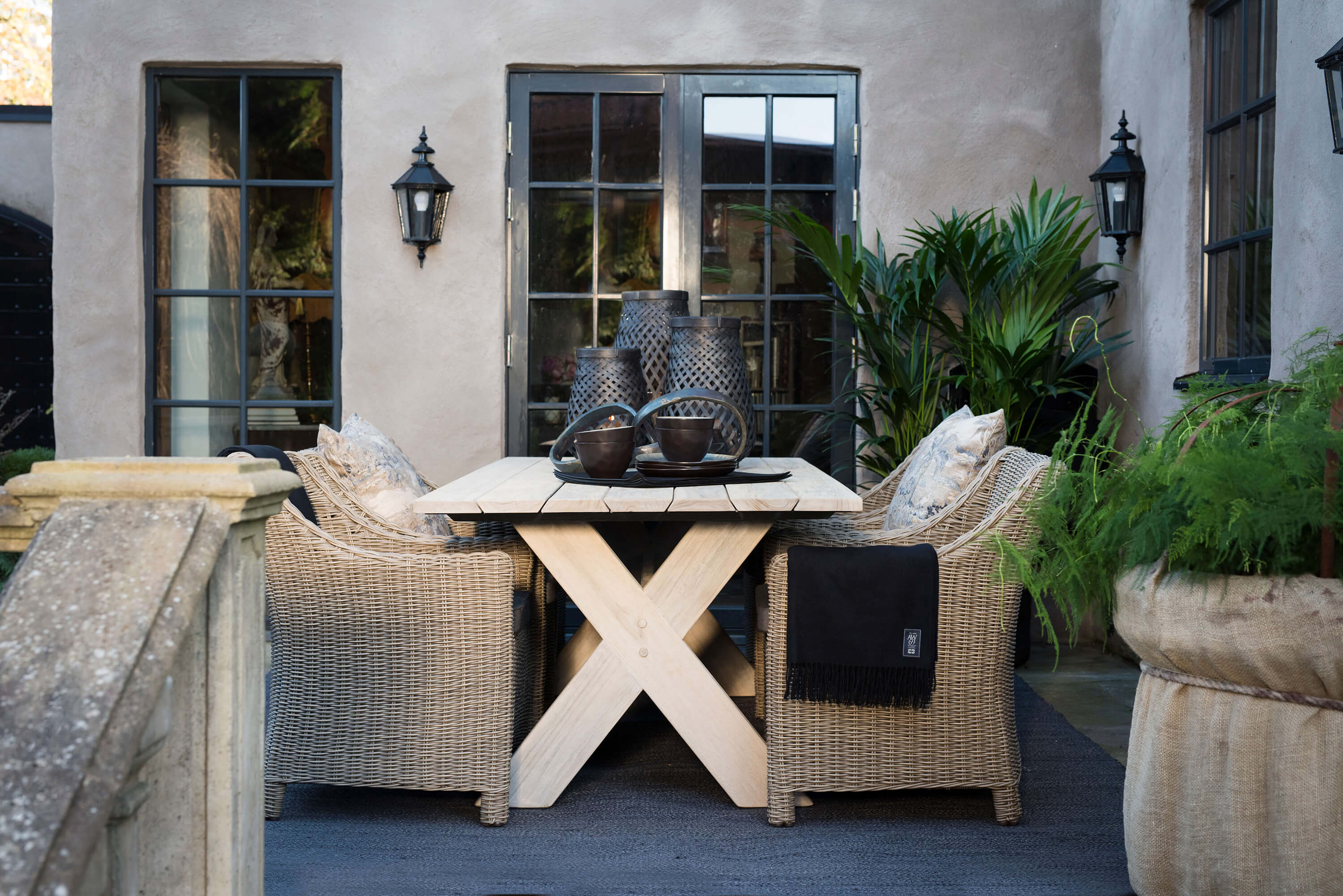 Møblene utvikler over tid en vakker sølvgrå patina når de utsettes for elementene, noe som er en naturlig aldringsprosess og påvirker ikke kvaliteten.